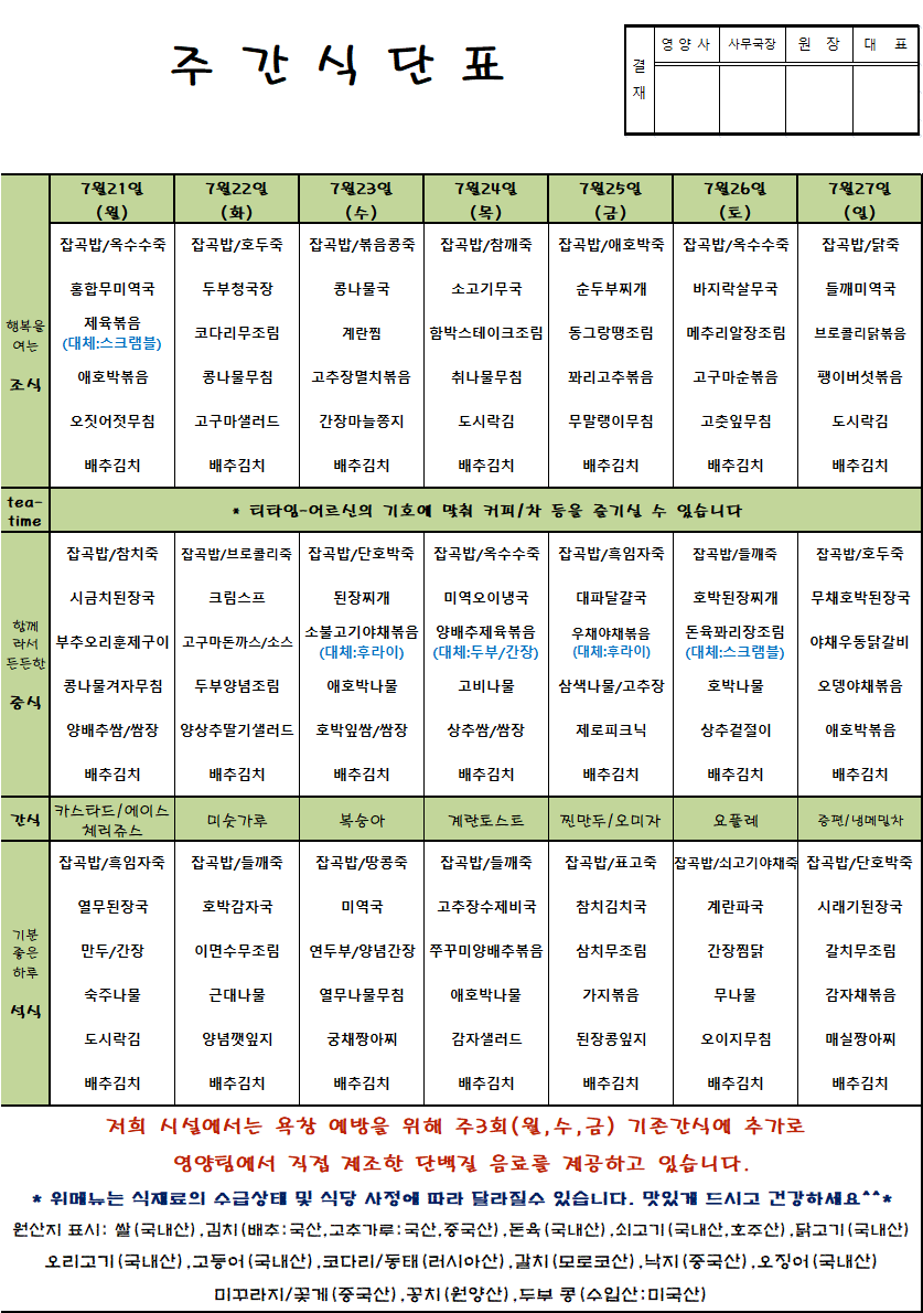 07.21 ~ 07.27 ÁÖ°£½Ä´ÜÇ¥