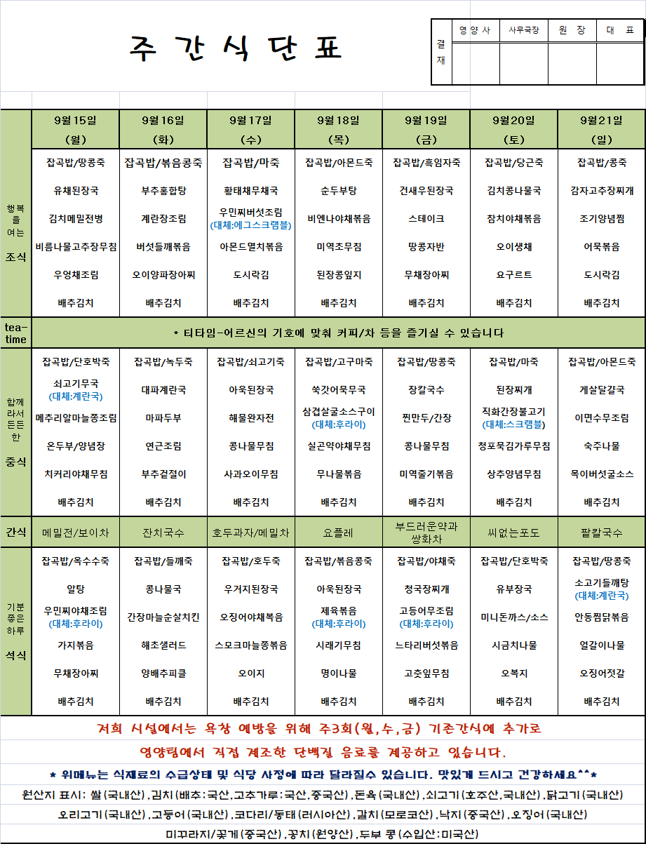 09.15~09.21 ÁÖ°£½Ä´ÜÇ¥
