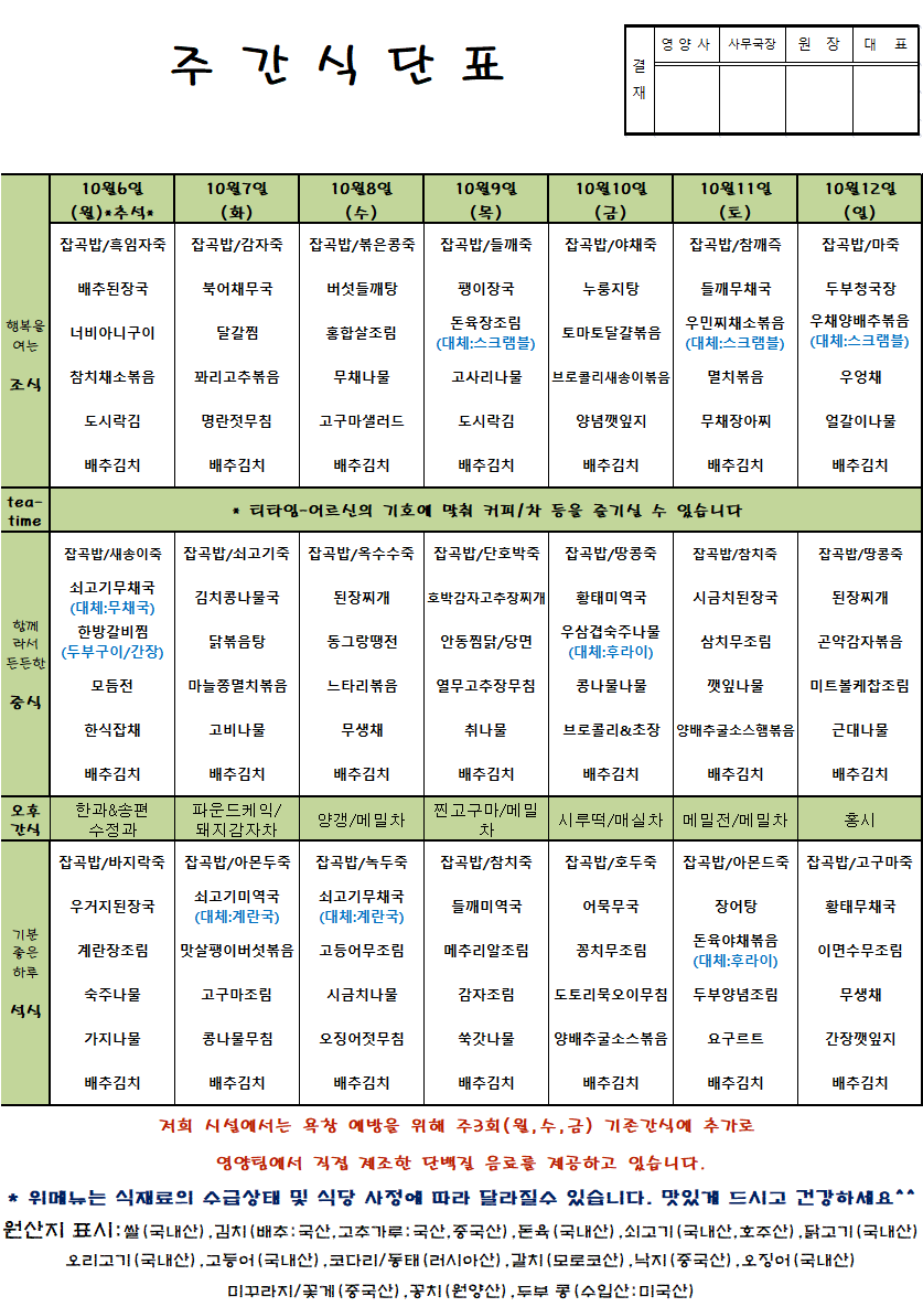 10.06~10.12 ÁÖ°£½Ä´ÜÇ¥