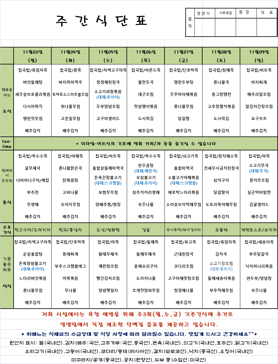 11.10 ~ 11.16 ÁÖ°£½Ä´ÜÇ¥