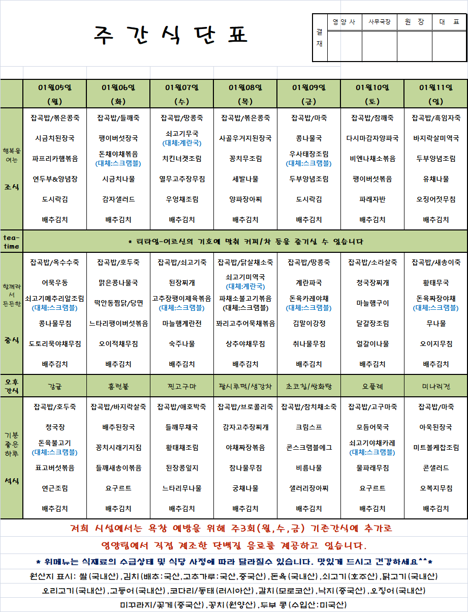 01.05~01.11 ÁÖ°£½Ä´ÜÇ¥