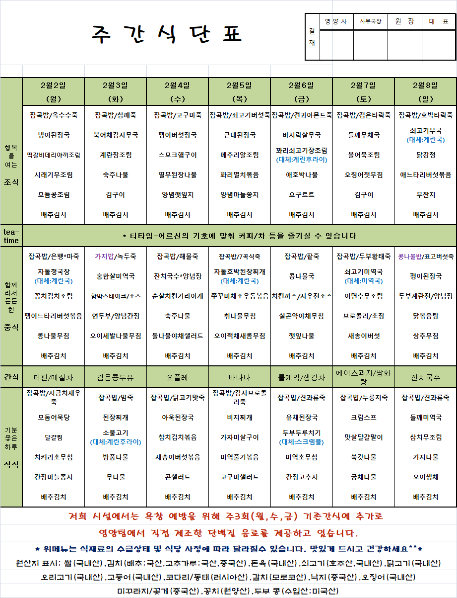02.02~02.08 ÁÖ°£½Ä´ÜÇ¥