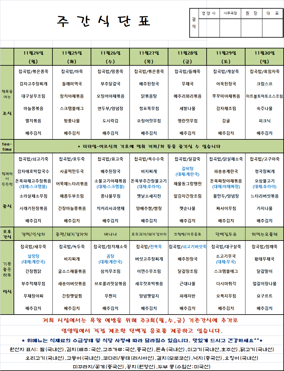 11.24 ~ 11.30 ÁÖ°£½Ä´ÜÇ¥