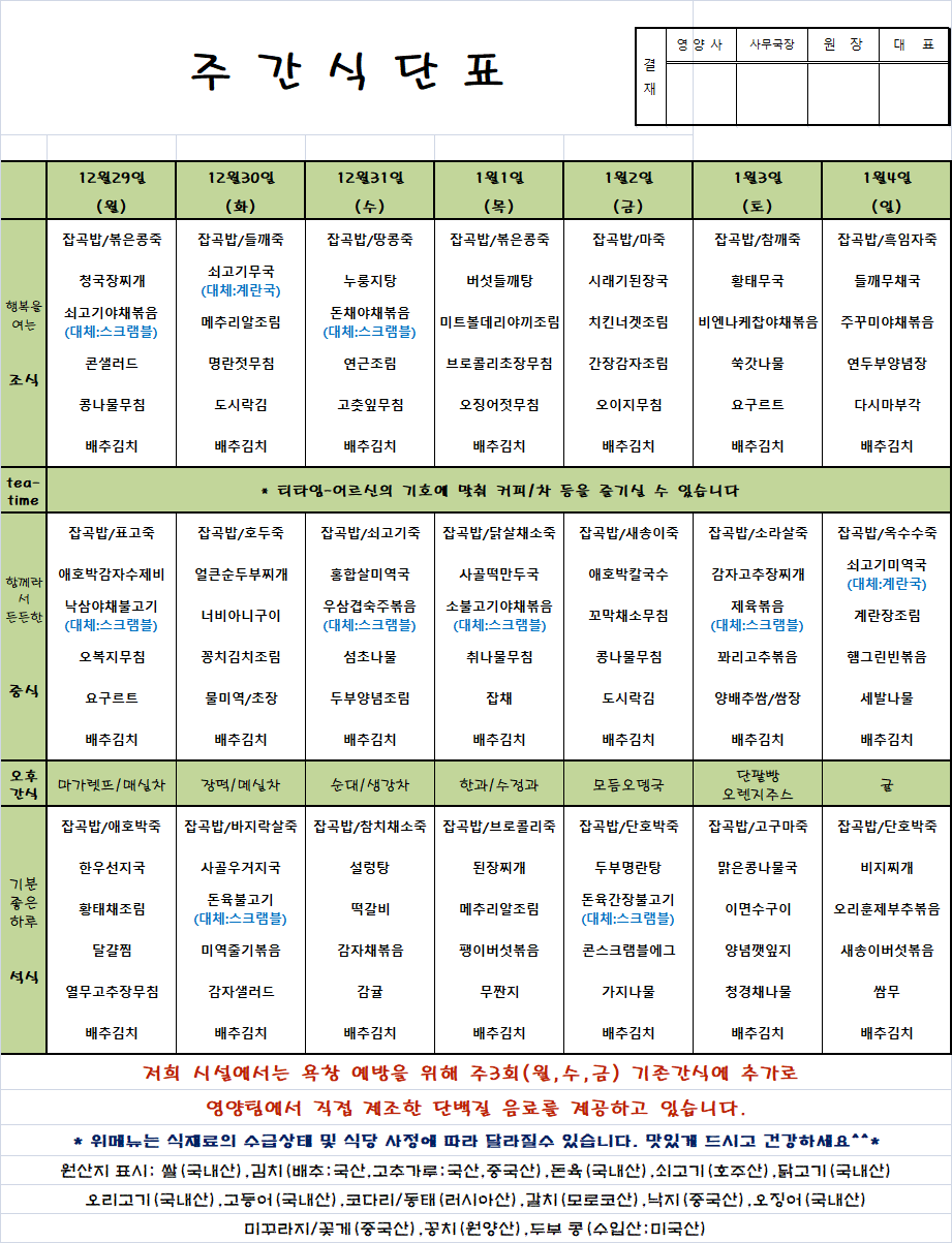 12.29~01.04 ÁÖ°£½Ä´ÜÇ¥