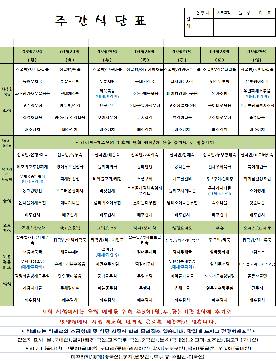03.23~03.29 ÁÖ°£½Ä´ÜÇ¥